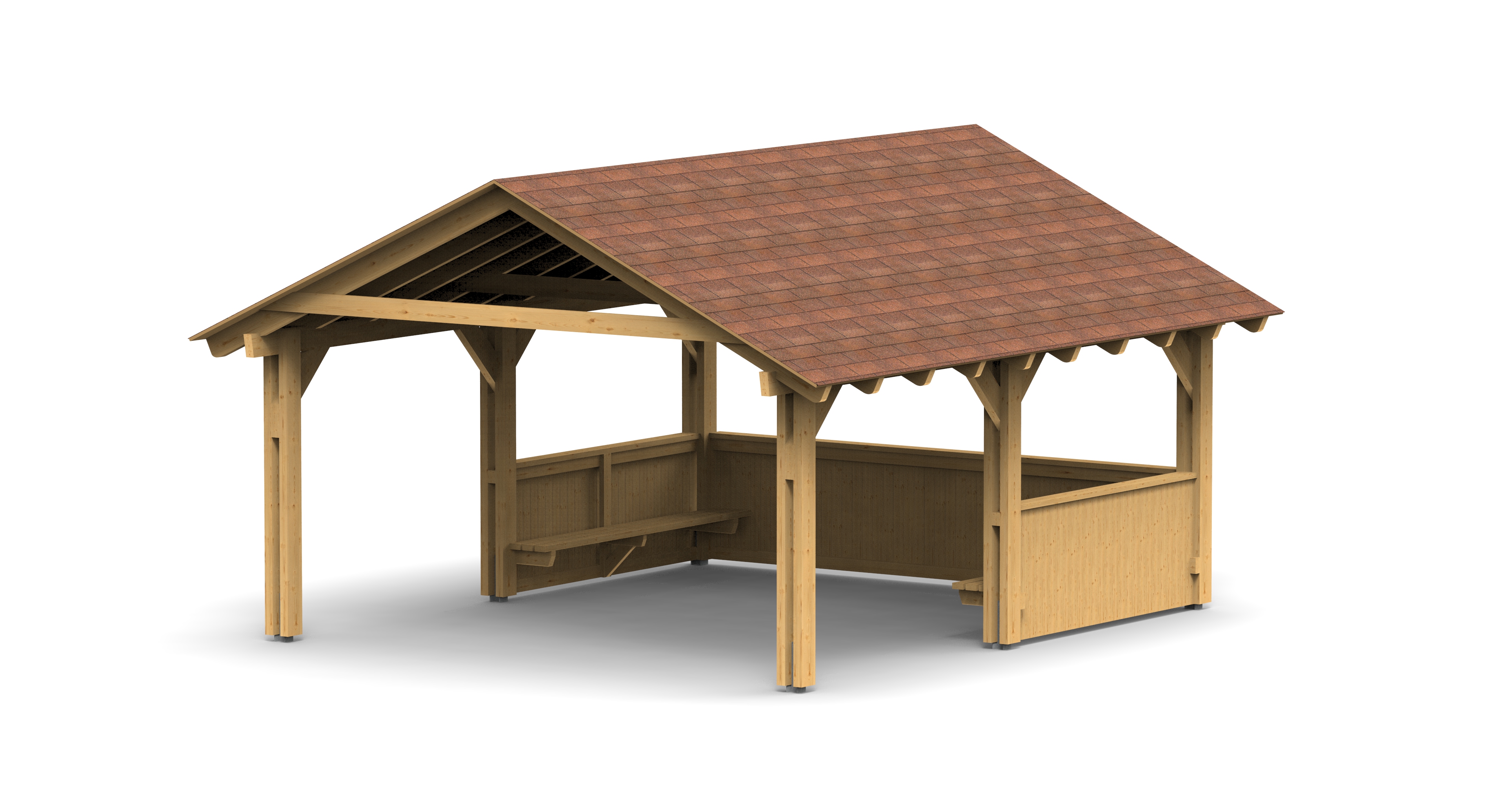 Prostorný obdélníkový altán se dvěma lavicemi. Další výbavu lze na přání doplnit.