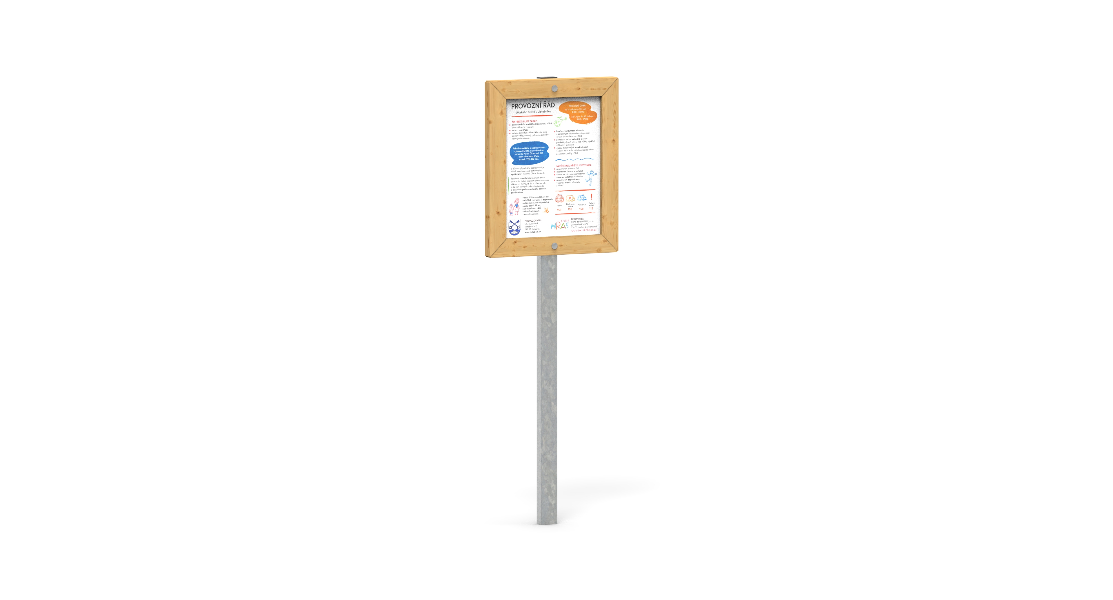 Infotabuli dodáváme nejčastěji včetně provozního řádu hřiště. Velikost viditelné části je 53 x 41 cm.