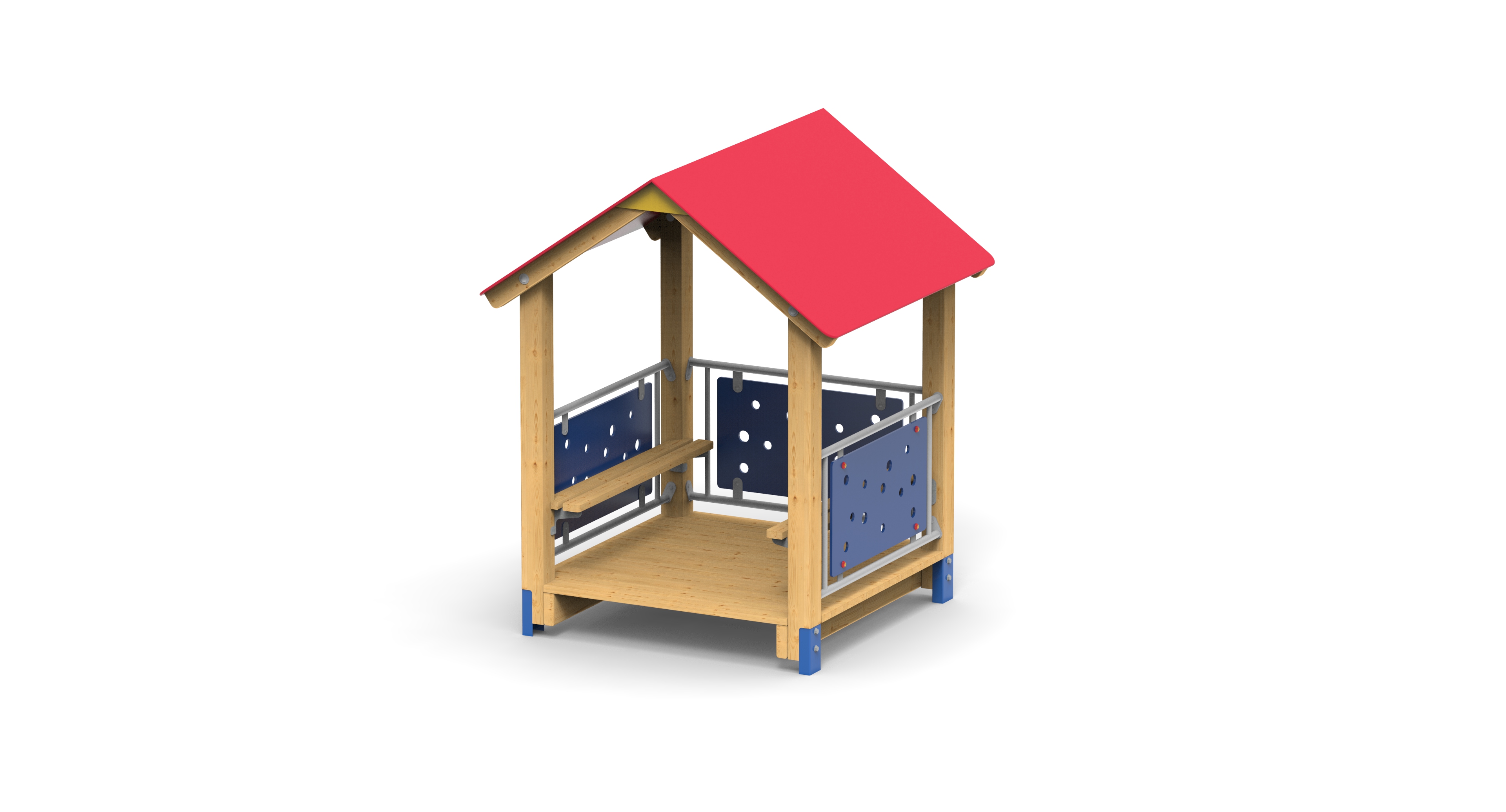 Domeček v duchu hranatého systému 18 pro nejmenší děti. Alternativně lze dodat s výplněmi ke kreslení křídami.